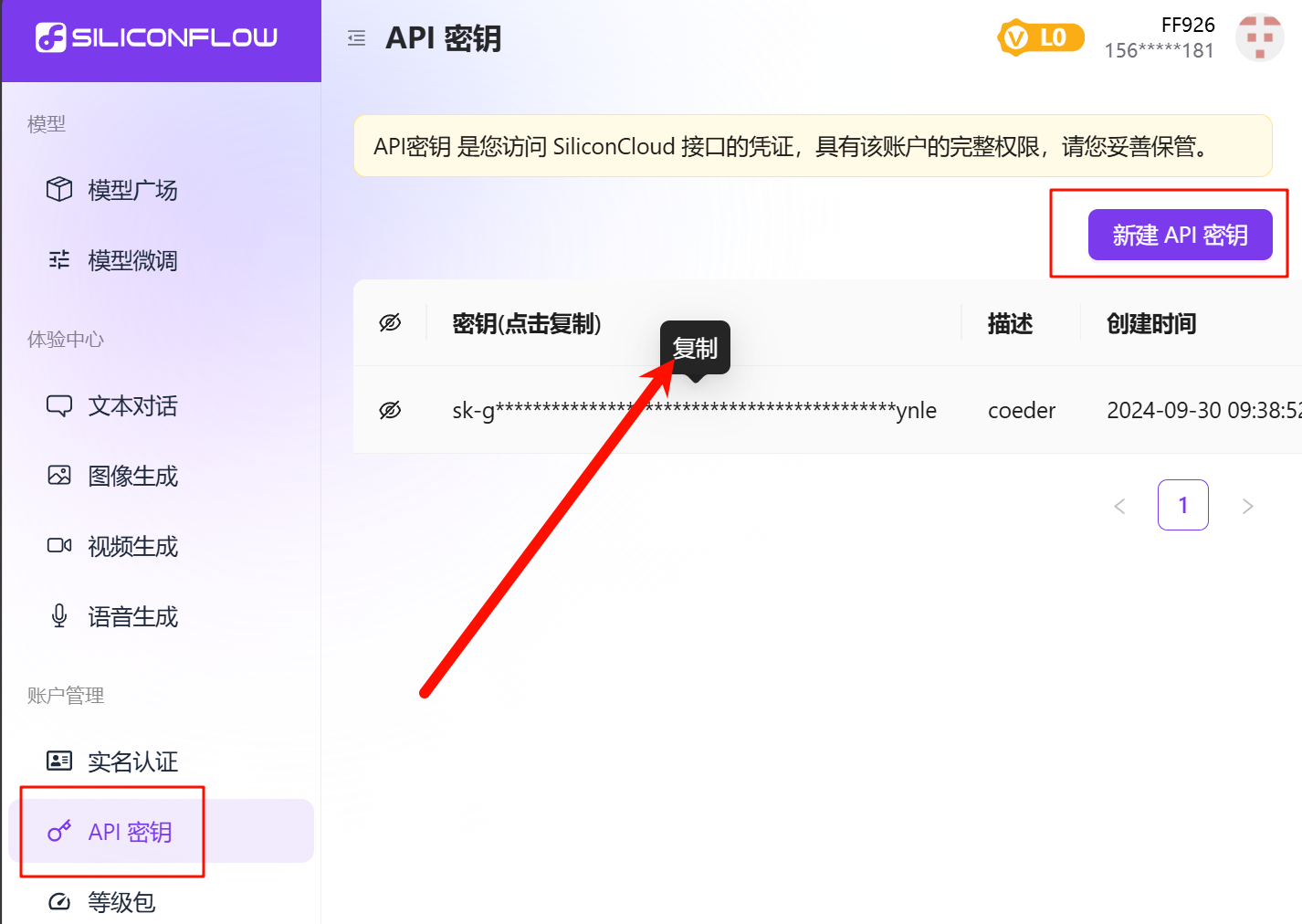 3.2. 注册成功后新建API密钥即可在各个平台进行API调用