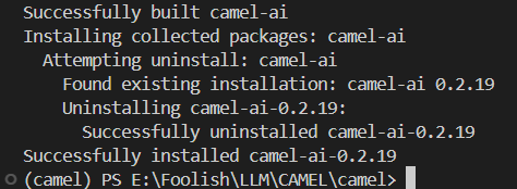 2.2.6. 出现 Successfully installed camel-ai-0.2.19即安装成功