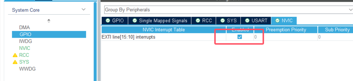 使能 EXTI 中断