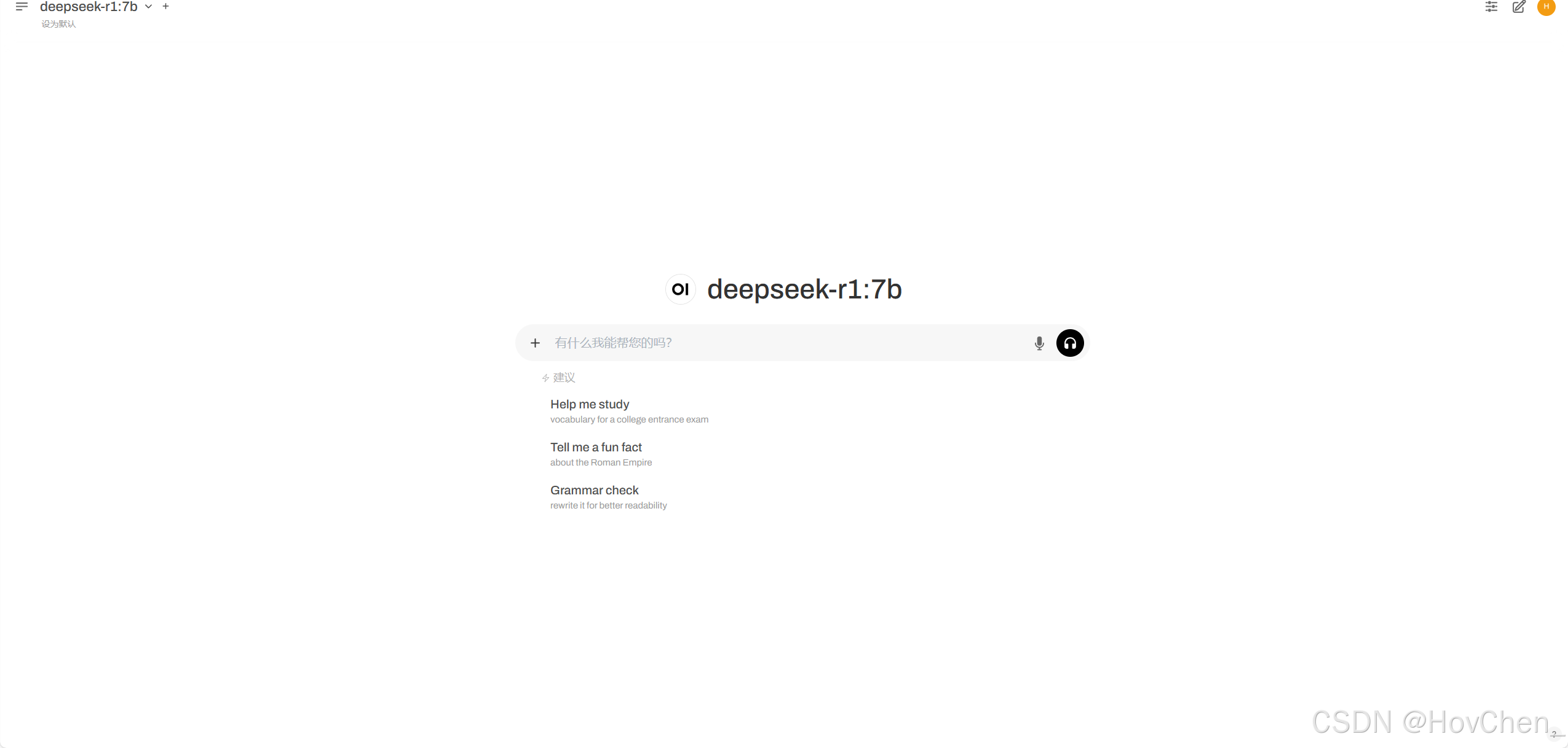 创建用户后,系统会自动加载Ollama下载的DeepSeek R1模型。