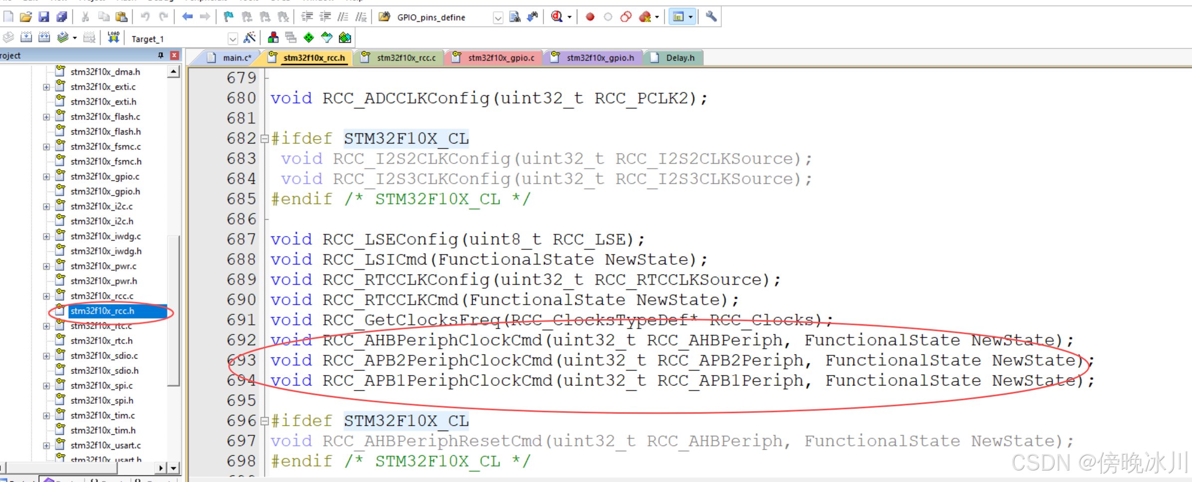 操作STM32的GPIO需要三个步骤,总共涉及了RCC和GPIO两个外设 ,下图圈出来的函数为最常用的函数