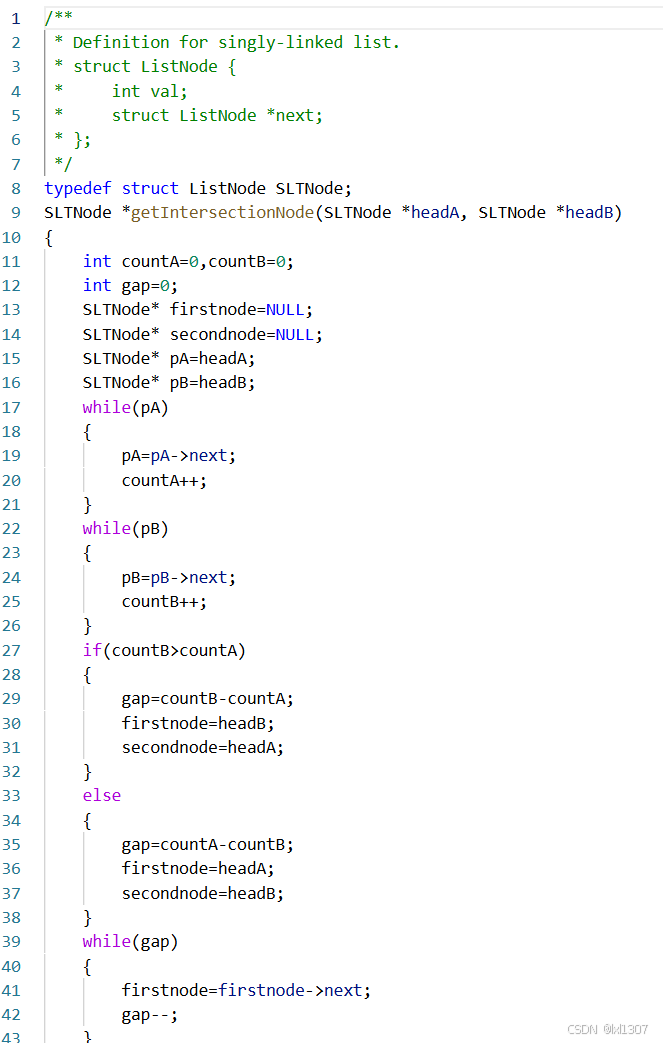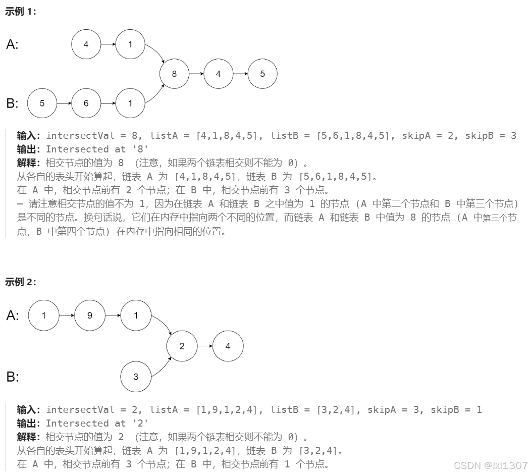 解法一:(参考解法)由于两个链表的长度不确定,所以不能直接同时遍历两个链表,可以先分别遍历两个链表,求出两个链表相差的长度,让长链表先走,对齐长度,再同时遍历两个链表,如果有链表储存的数据不同,返回flase,否则返回true