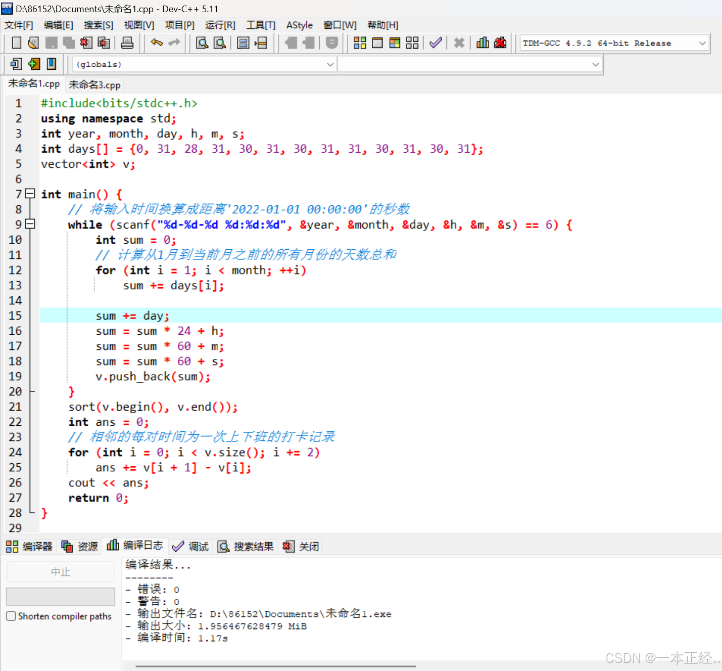 2023年第十四届蓝桥杯省赛C/C++大学C组试题B:工作时长