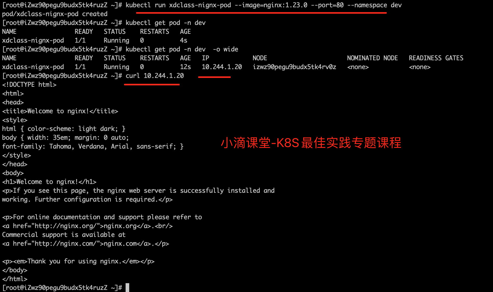 kubectl run xdclass-nignx-pod --image=nginx:1.23.0 --port=80 --namespace dev
