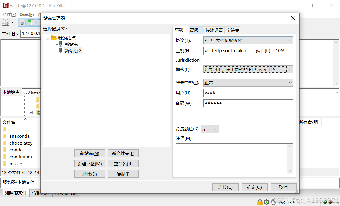 5、然后在 FileZilla 客户端里配置新创建好的映射