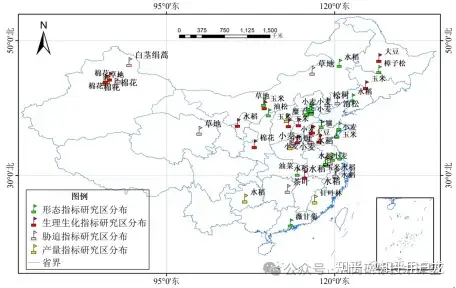 图2 近5年低空遥感研究的作物品种研究区分布图