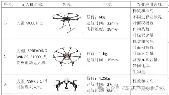 图3 目前农林业遥感使用的无人机性能指标与领域图