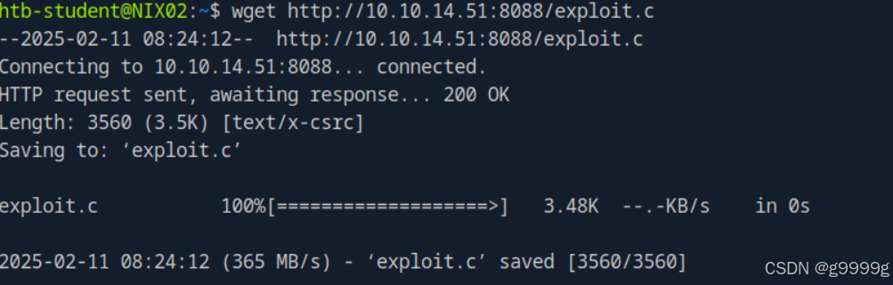 由于靶机无法直接下载,我们选择先下载在攻击机上,再有目标机下载攻击机上的exp即可