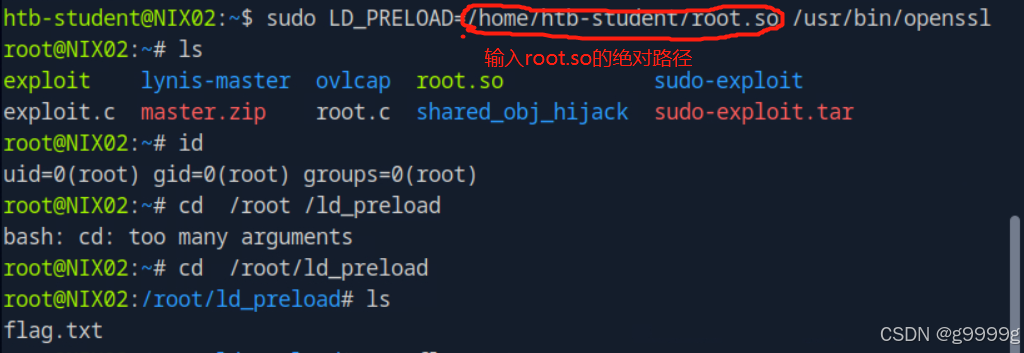 这个咱也不知道咋回事,运行也不报错,直接就是root,也不用重新编译。其实这个章节原理很简单只要找到合适的二进制程序,再找到先执行的目录,将恶意的so文件放入目录中,即可做到恶意劫持